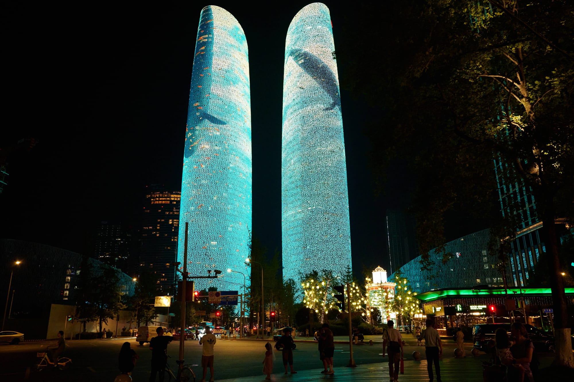 After dinner, take a DiDi to the Twin Towers viewing point — the LED screens become an incredible animated light show at night (whales, Nezha characters, and more). Make sure to arrive before 10 PM — the lights turn off at 22:30.