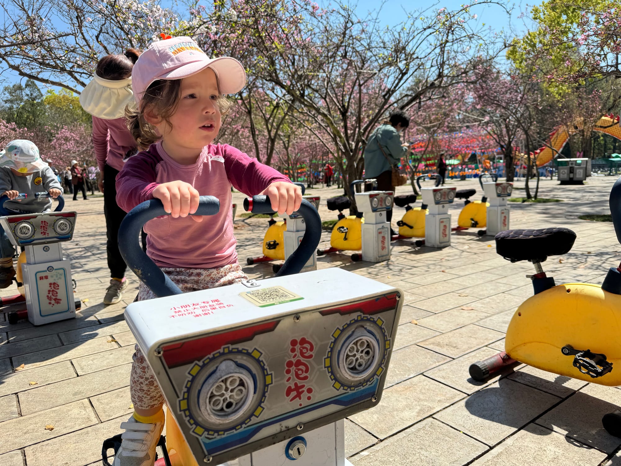 For the kids specifically there is a small theme park with carousels and trampolins and a little train for kids that rides through the park. Our personal favourite were little excercise bikes for kids that blow bubbles and play music - best 10 Yuan ever spent!