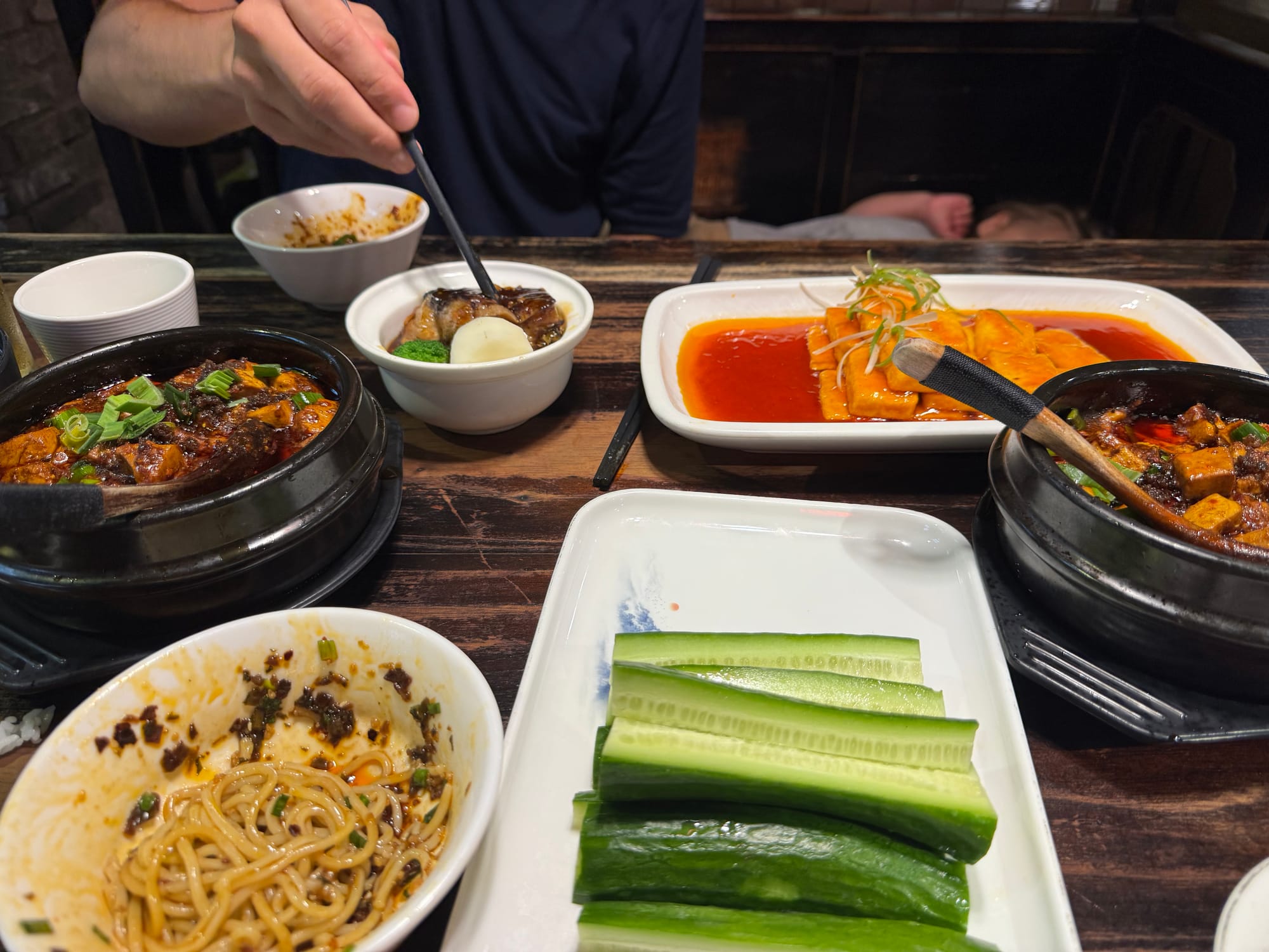 Supposedly the birthplace of the mapo tofu dish, this restaurant is really very, very good. Not only the mapo tofu itself, but all the dishes we tried. And the prices are surprisingly affordable — for our family of 4 we ordered a meal that would easily satisfy 4 adults, and we paid 240 RMB ($30) for everything including drinks — very reasonable price for what we ate.