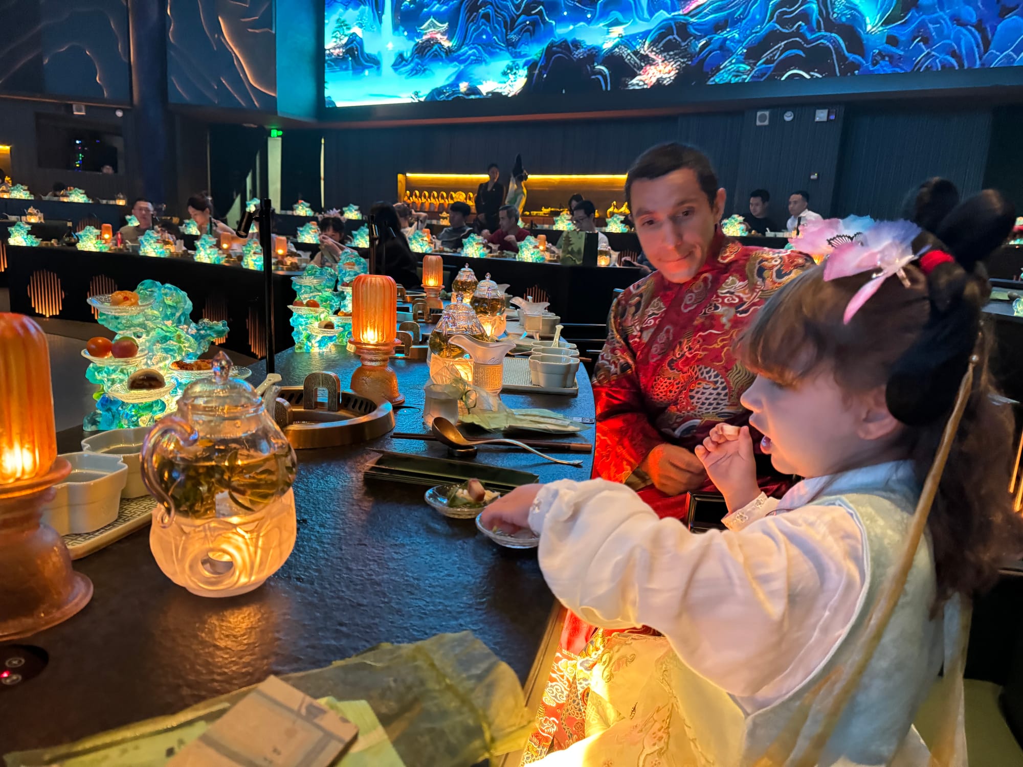 All across China, restaurants offering a banquet experience are gaining popularity — and in Chengdu, you can experience hotpot in a hanfu restaurant. Both us and our kids loved the experience of dressing up, eating gourmet hotpot and watching a performance that was a mix of traditional Sichuan opera, acrobatics and modern dance.