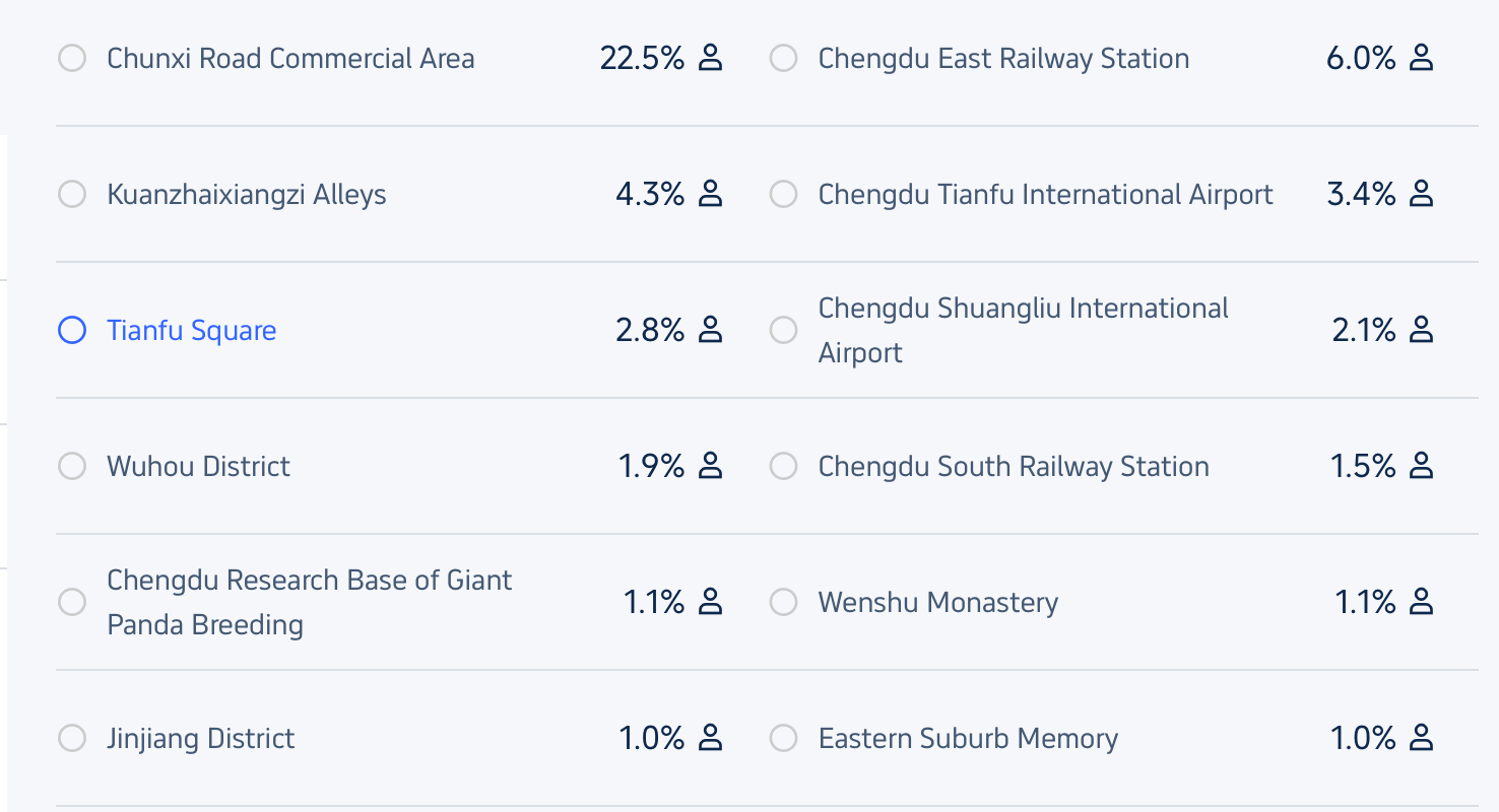 According to Trip.com more than 20% of all users choose Chunxi Road area – and for a good reason! It has delicious food and nightlife all around, with easy access to the metro to get around the city.
