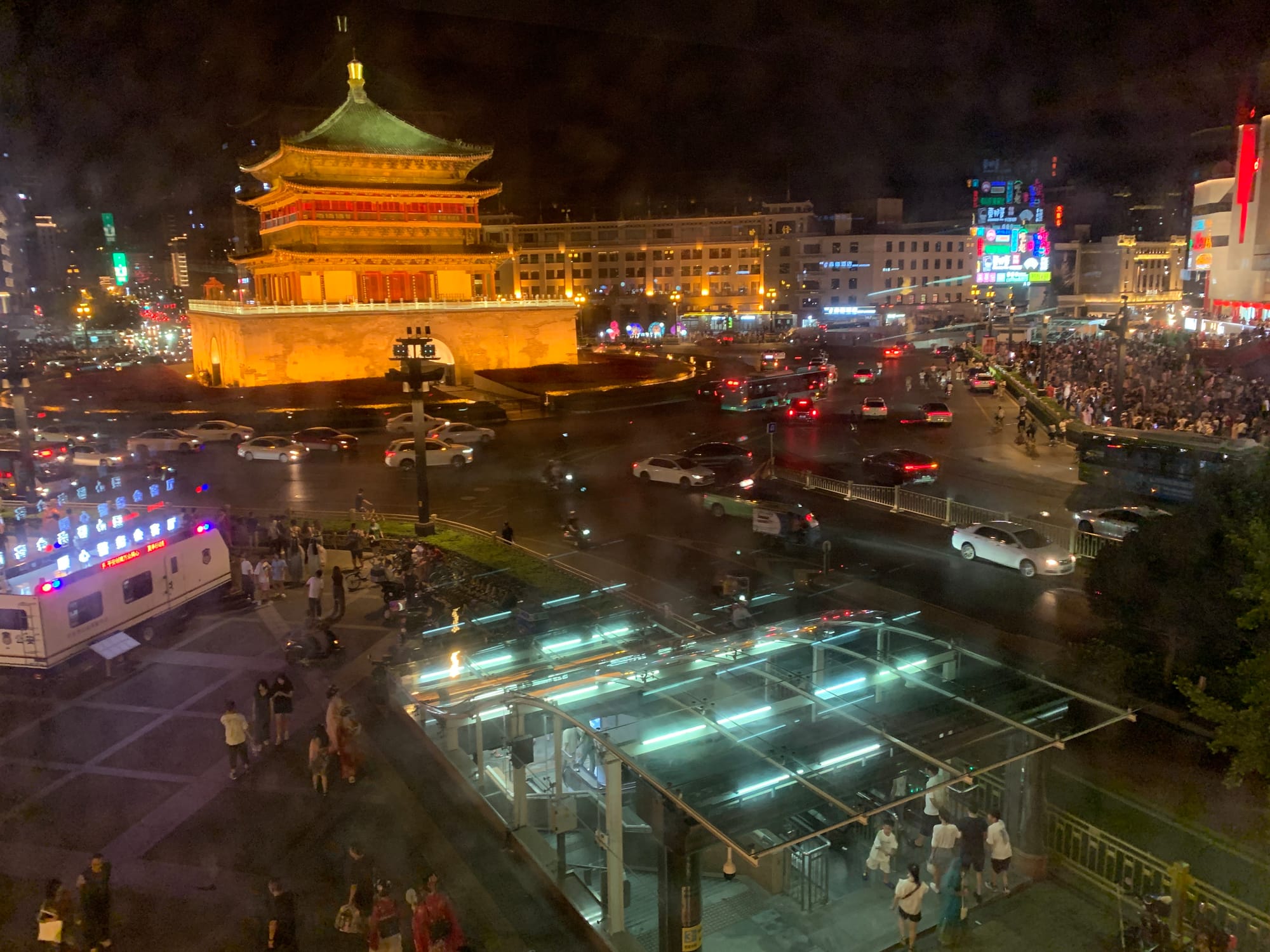 We stayed at Xi'an Bell Tower Hotel which has had its best days behind, and it definitely had this old school hotel feeling to it, but our room was a family friendly room with a panorama view on the Bell Tower, which was pretty spectacular.